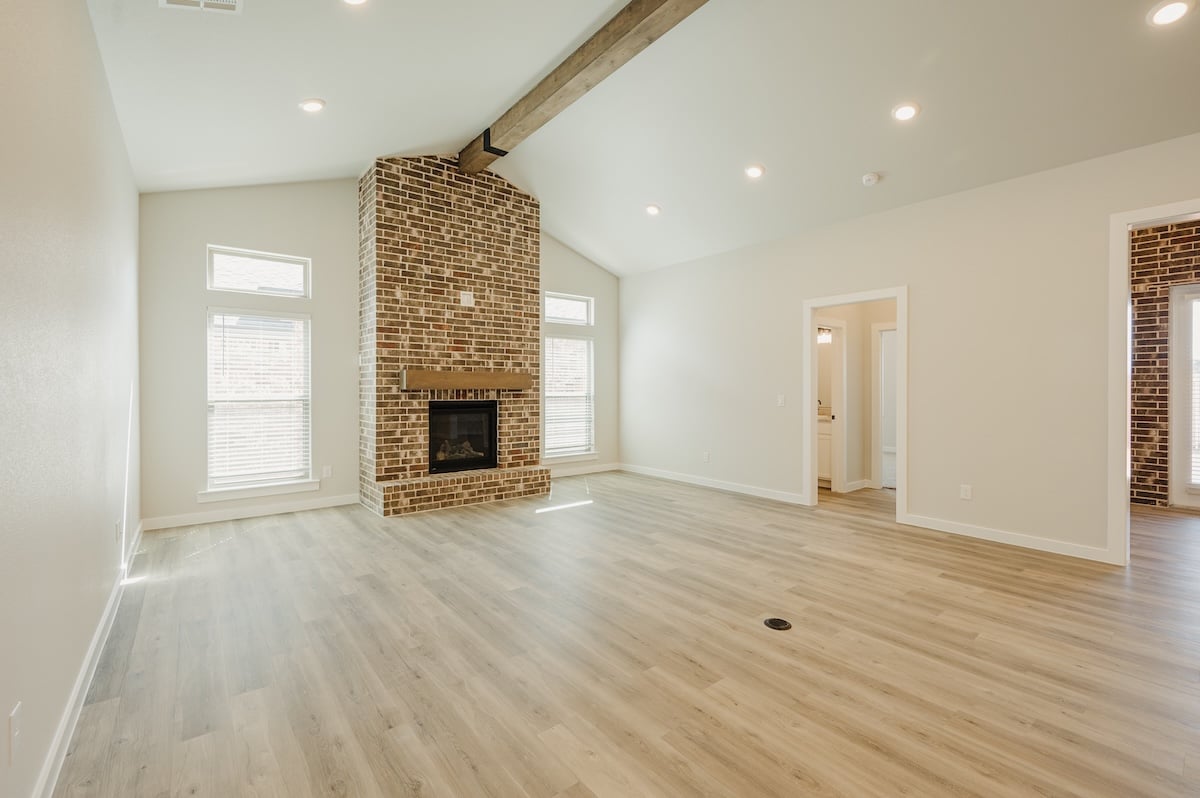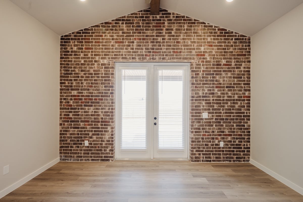 - Floor-to-ceiling brick fireplace