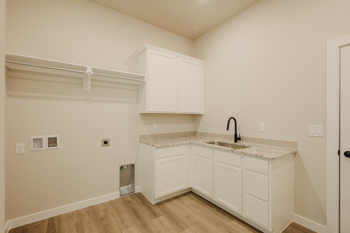 - Oversized utility room with sink, counter space, and storage