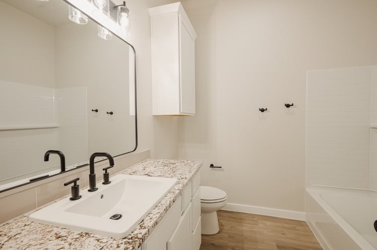 - Granite or quartz countertops throughout