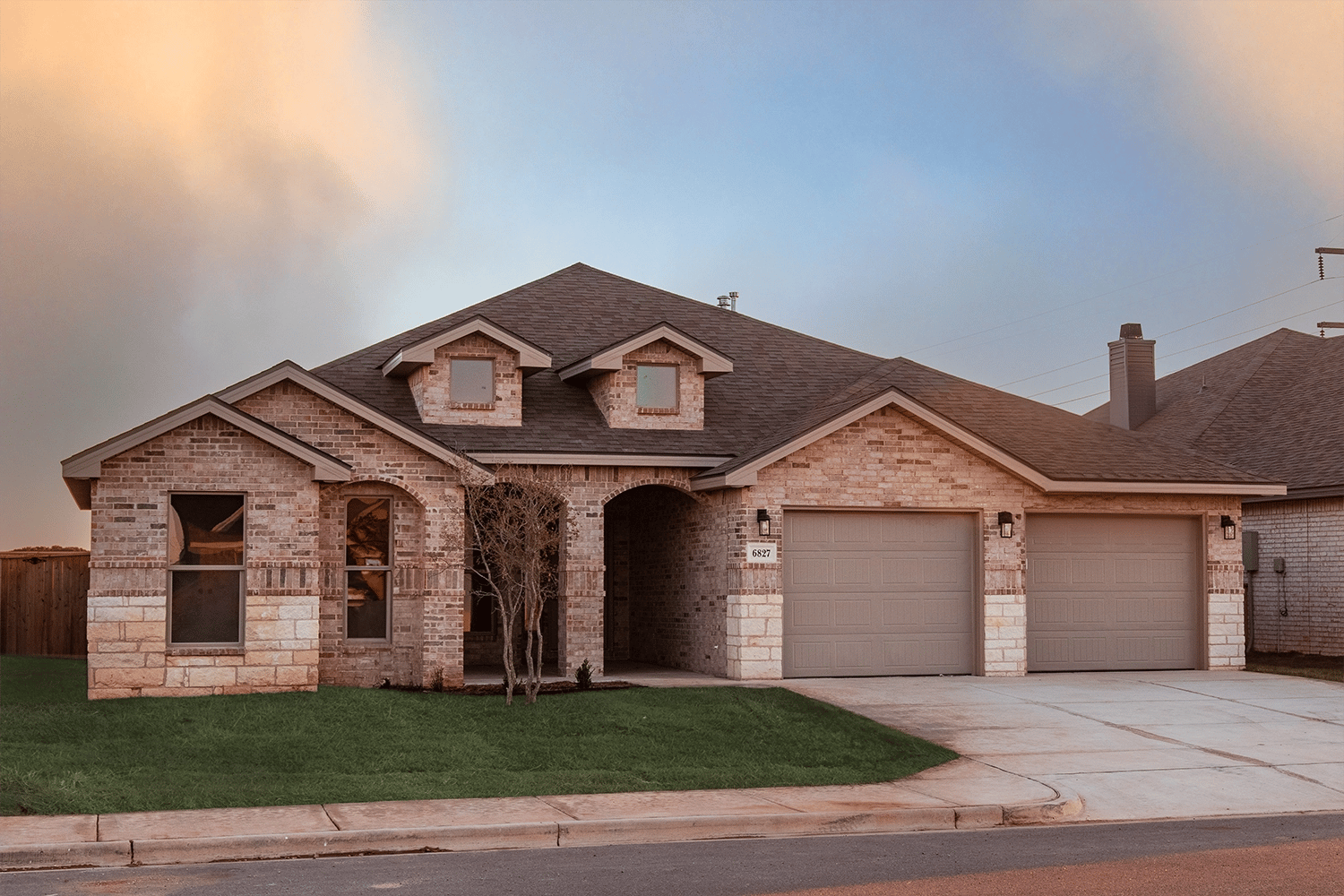 - Brick exterior complemented by stone accents and double dormers