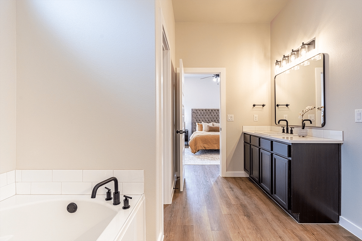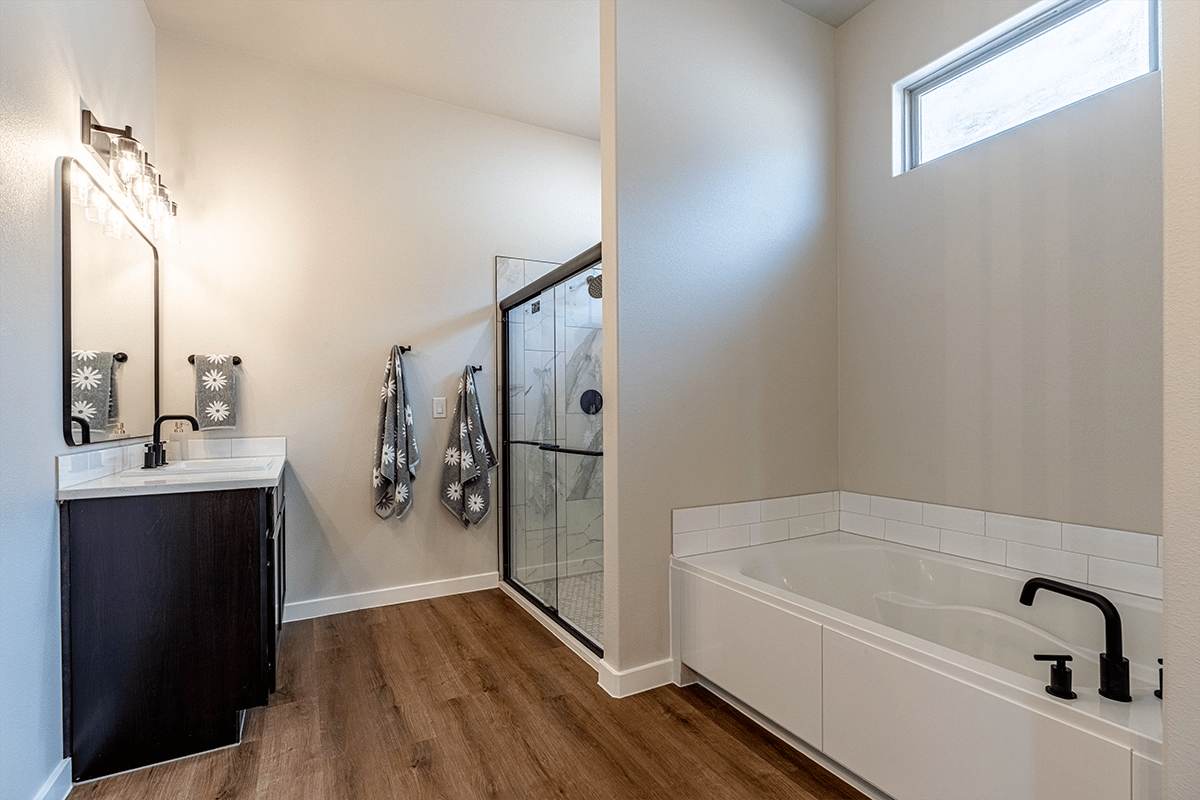 - Luxury vinyl plank flooring in the home's common areas