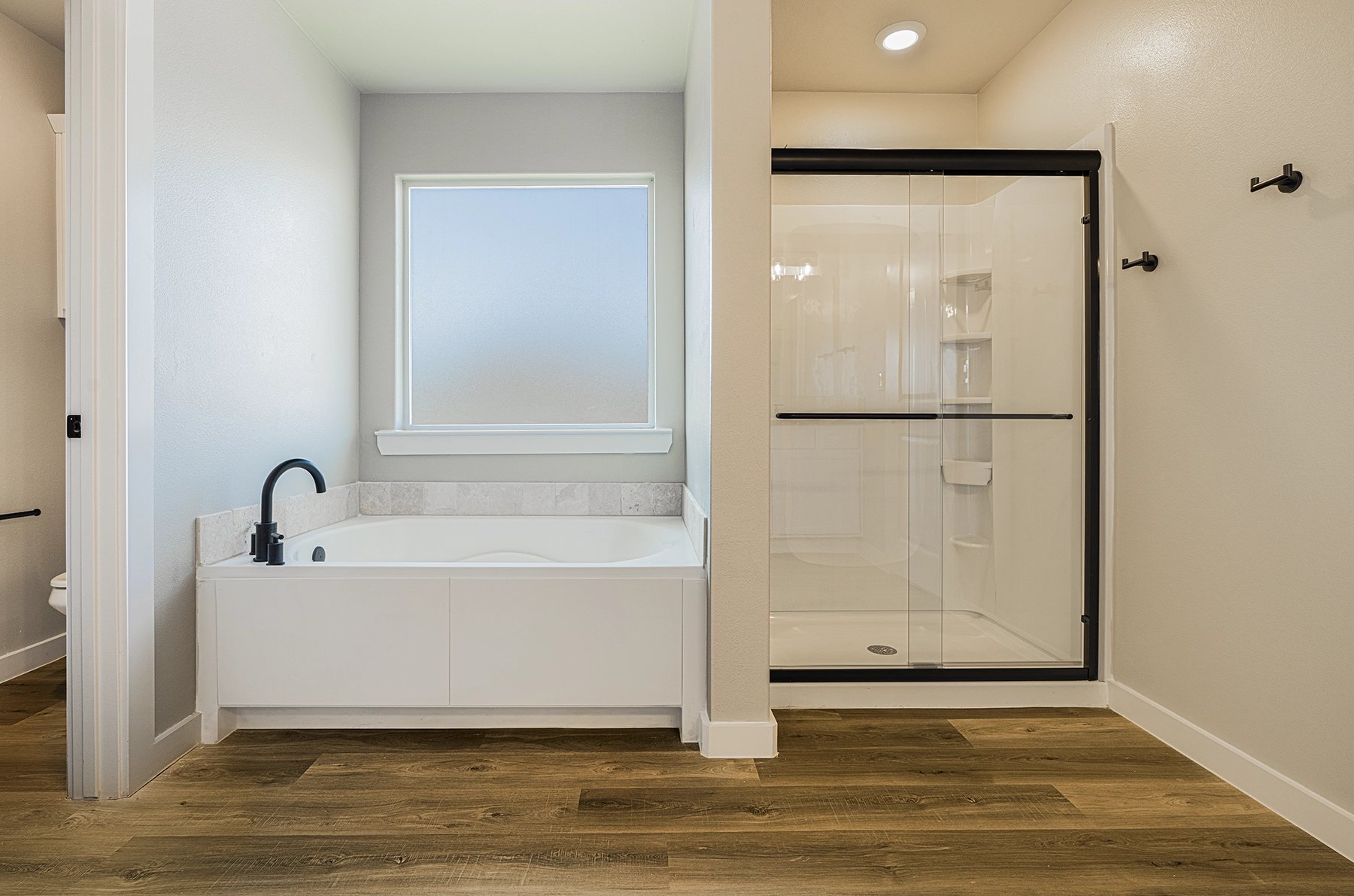 - Luxury vinyl plank flooring in the home's common areas