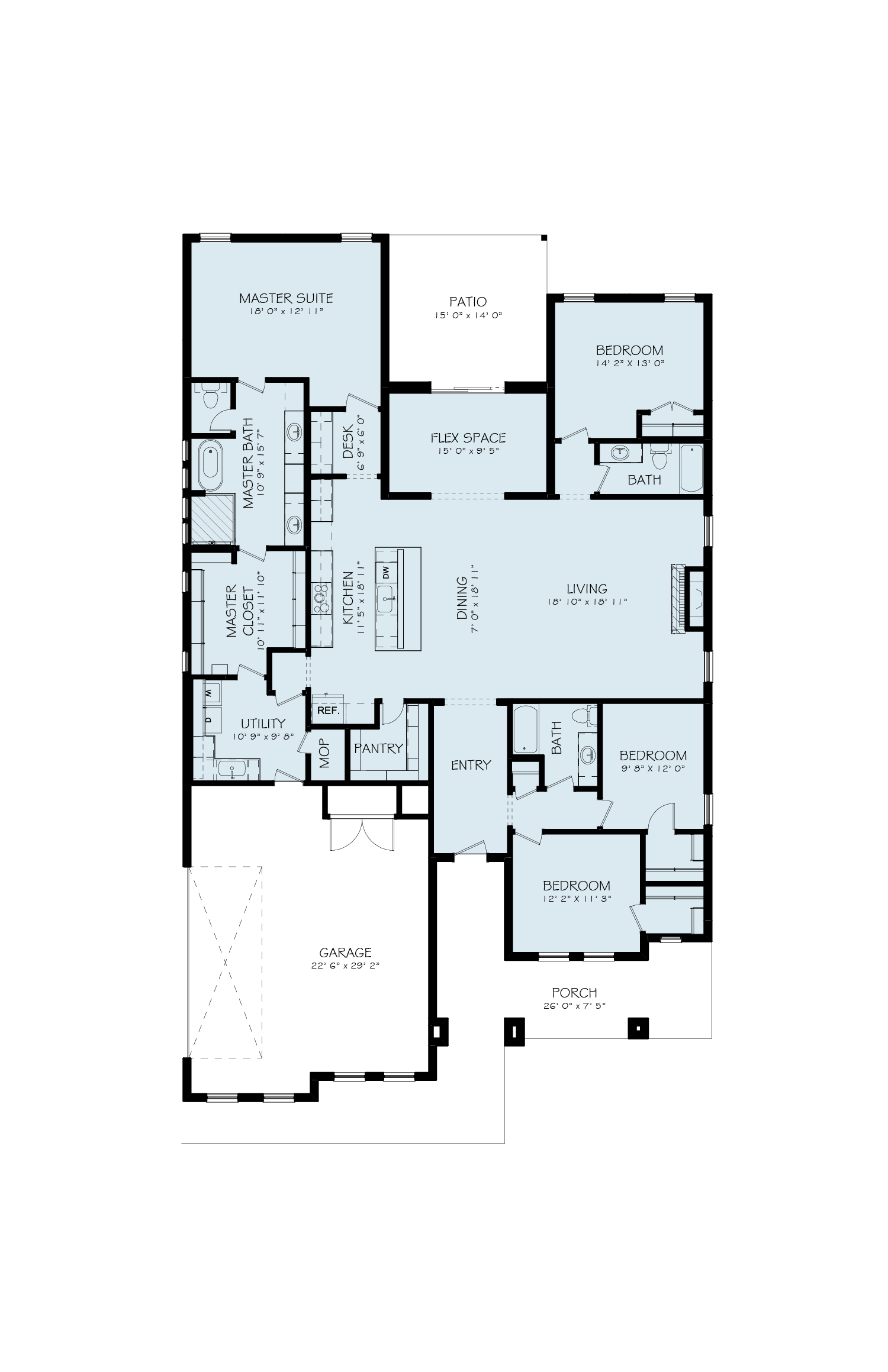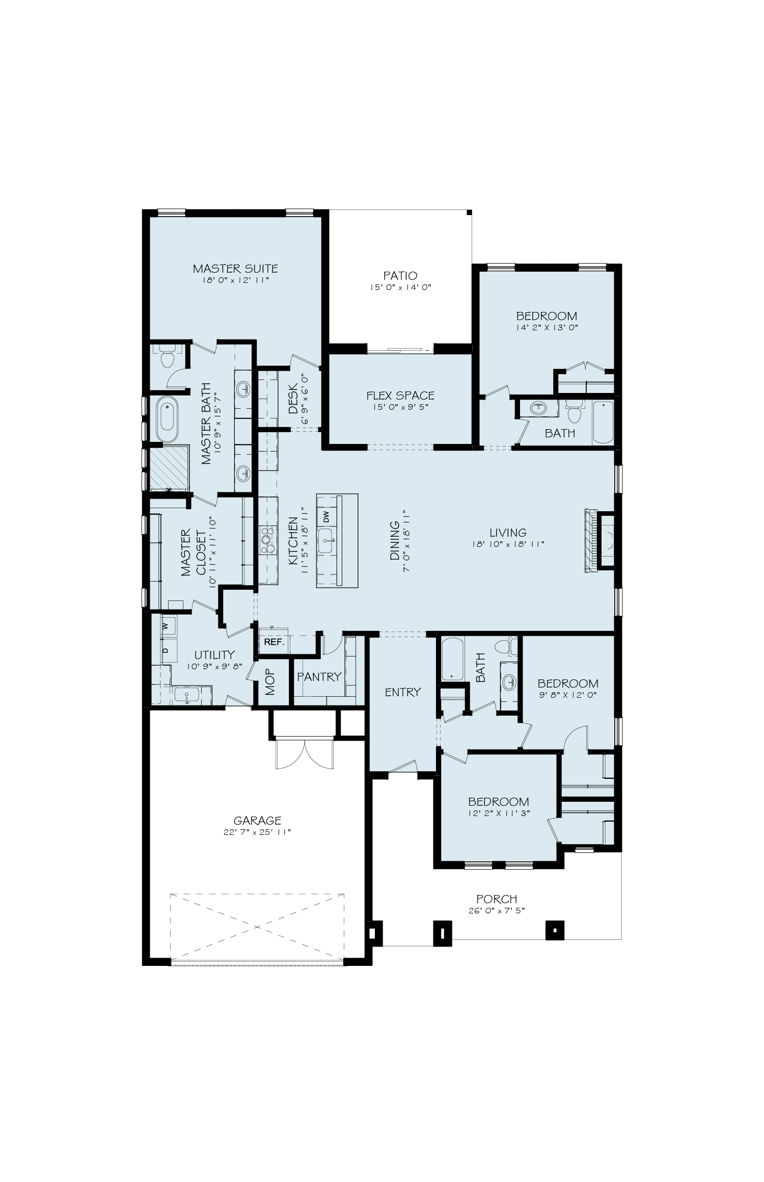 - Secluded master suite with garden tub, walk-in shower, his and hers vanities, and oversized walk-in closet with utility room access