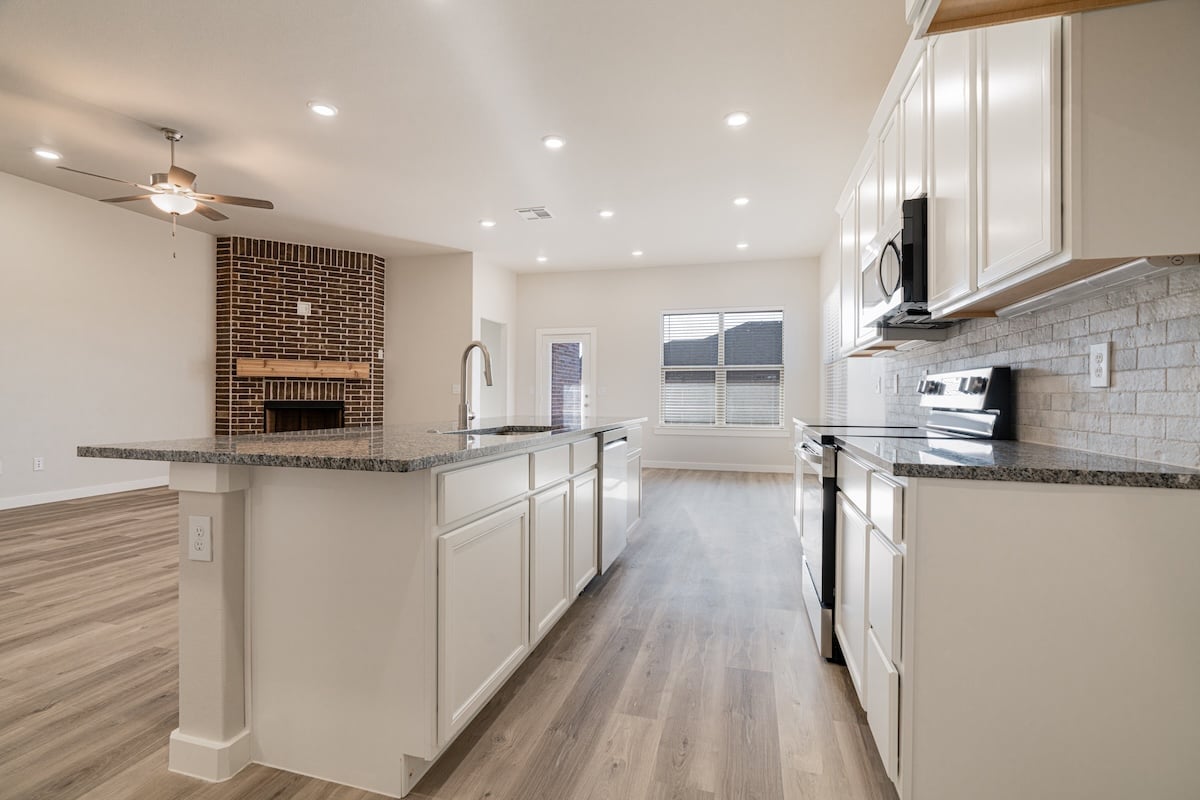 - Granite or quartz countertops throughout
