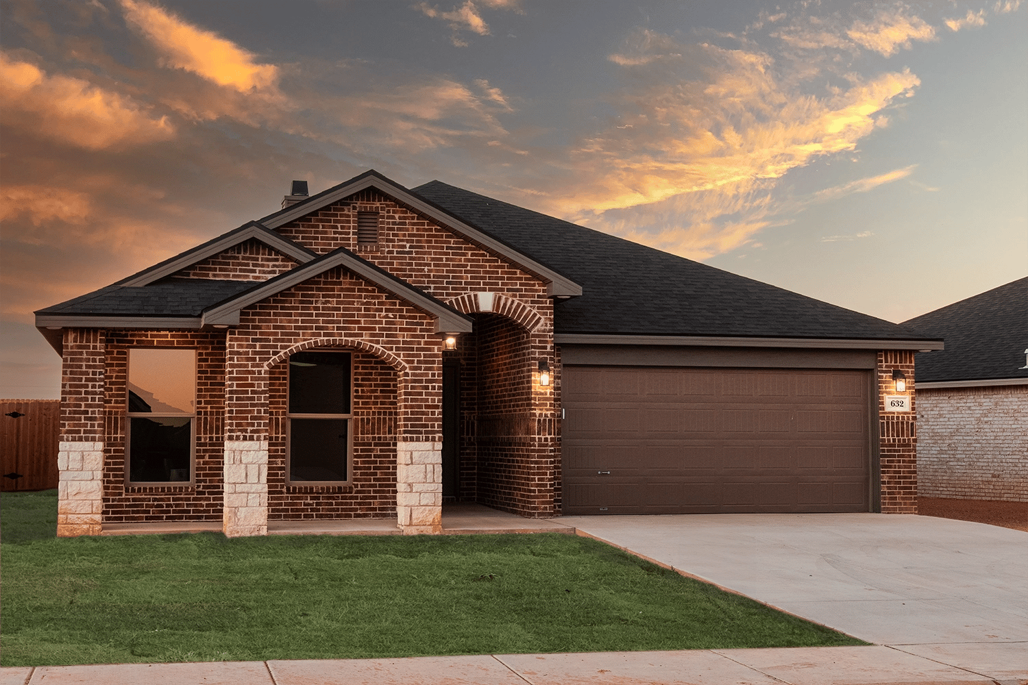 - Brick exterior complemented by triple gables, stone accents, and an elegant arched entryway