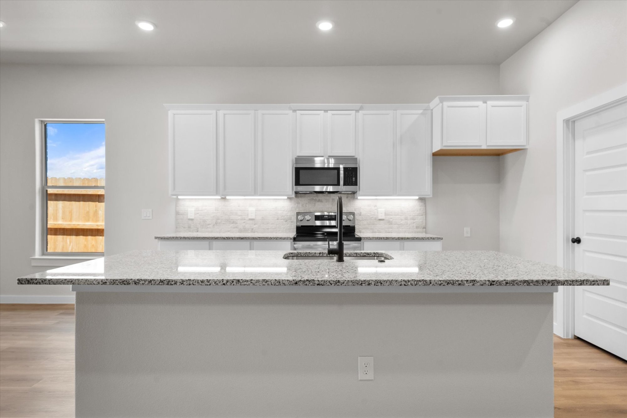 - Granite or quartz countertops throughout